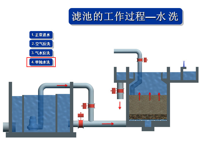 反洗水泵:為濾池濾料的反沖洗和氮氣釋放系統提供反沖洗水。