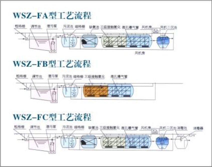 WSZ-FC型用于具有脫氮、脫磷、消毒要求的污水處理。