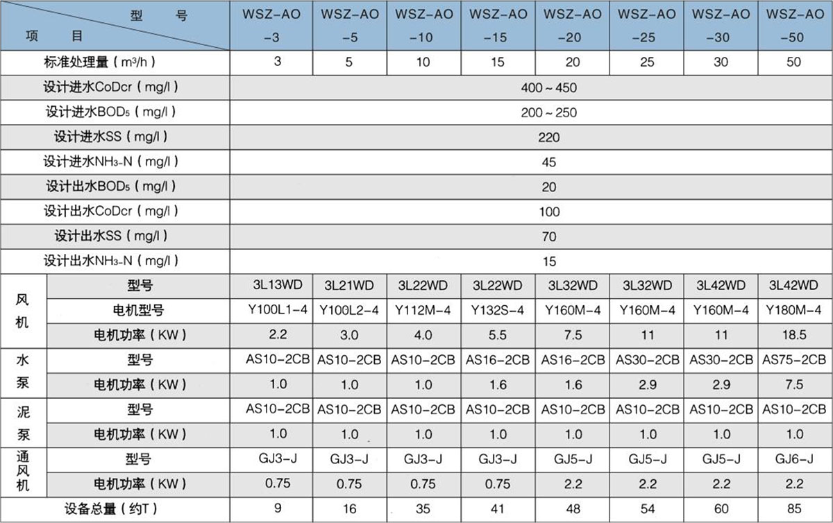 調(diào)節(jié)池:WSZ- AO系列調(diào)節(jié)時間為8小時。