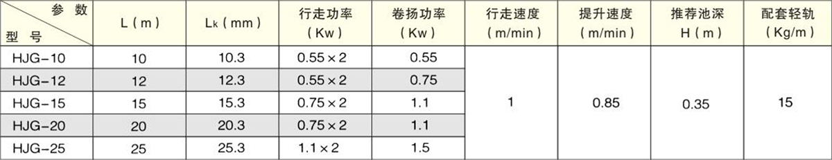 規(guī)格型號及技術參數(shù)(池寬10-25m)